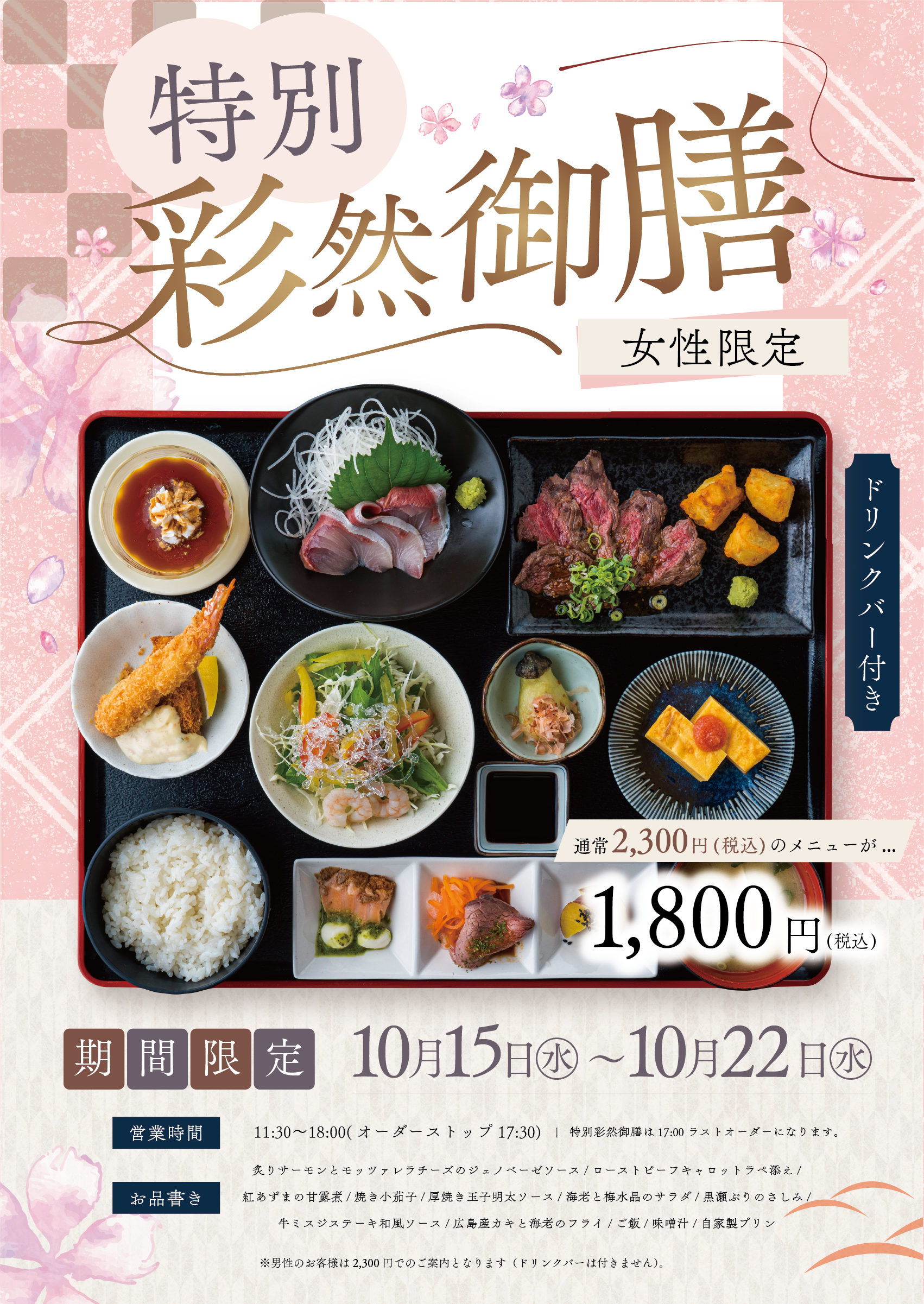 ぜひ、リニューアル後の新しいサウナ体験をお楽しみに!工事期間中女性のお客様限定のお得な御膳が登場